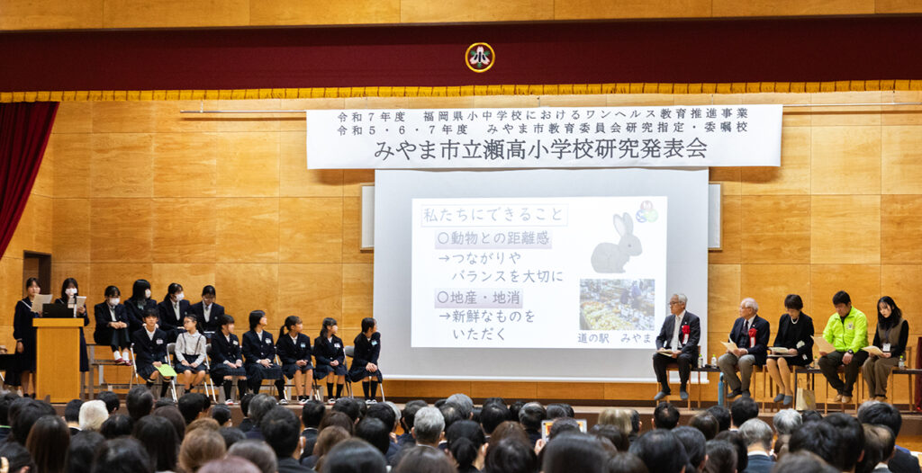 2025年11月20日、みやま市立瀬高小学校で「第5回ワンヘルス楽校」が開催され、小・中・高校生が日頃の学びをもとに「私のワンヘルス」を発表した。子どもたちは、人・動物・自然のつながりを大切にするワンヘルスの理念を、自らの体験や気づきと結びつけて紹介しました。