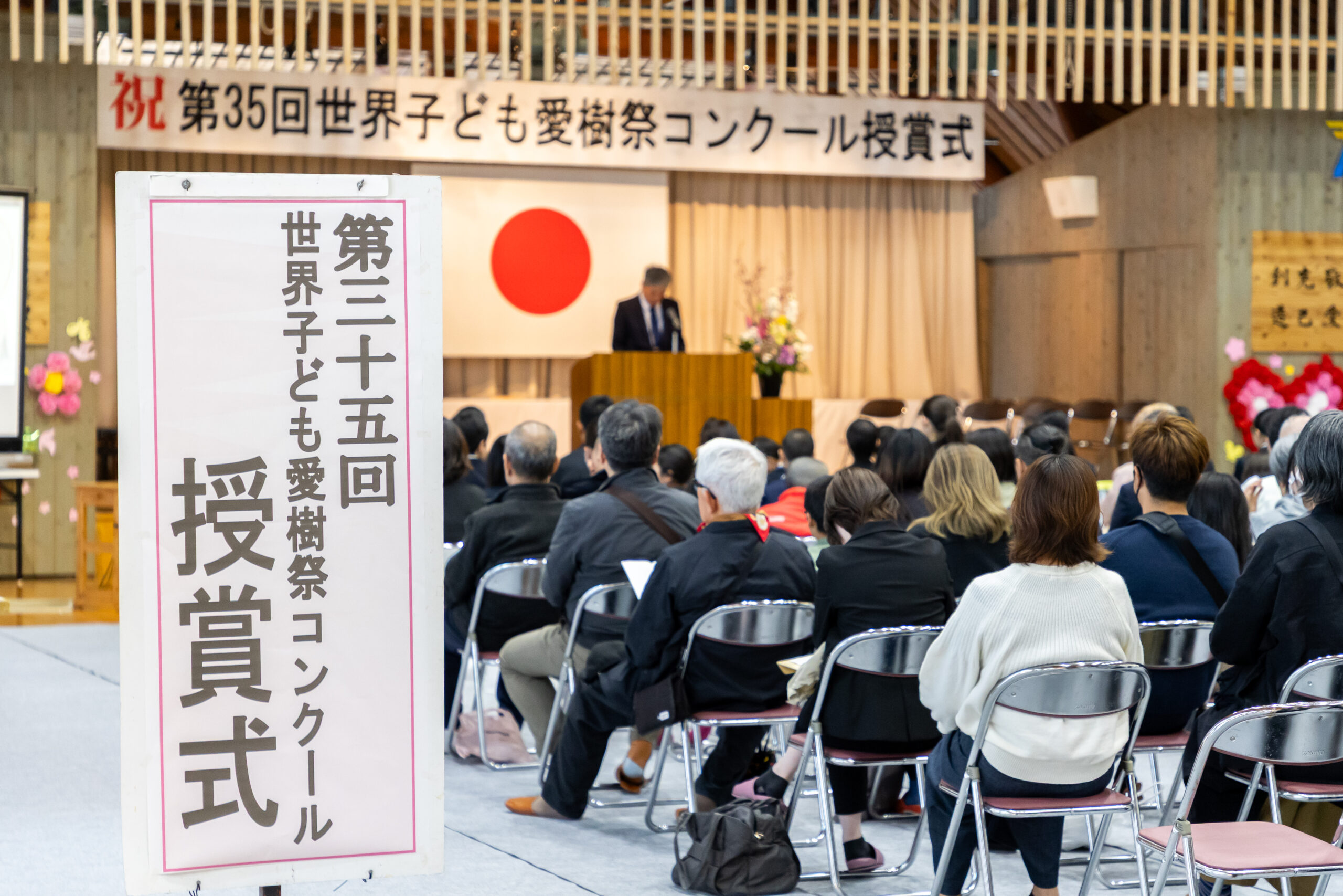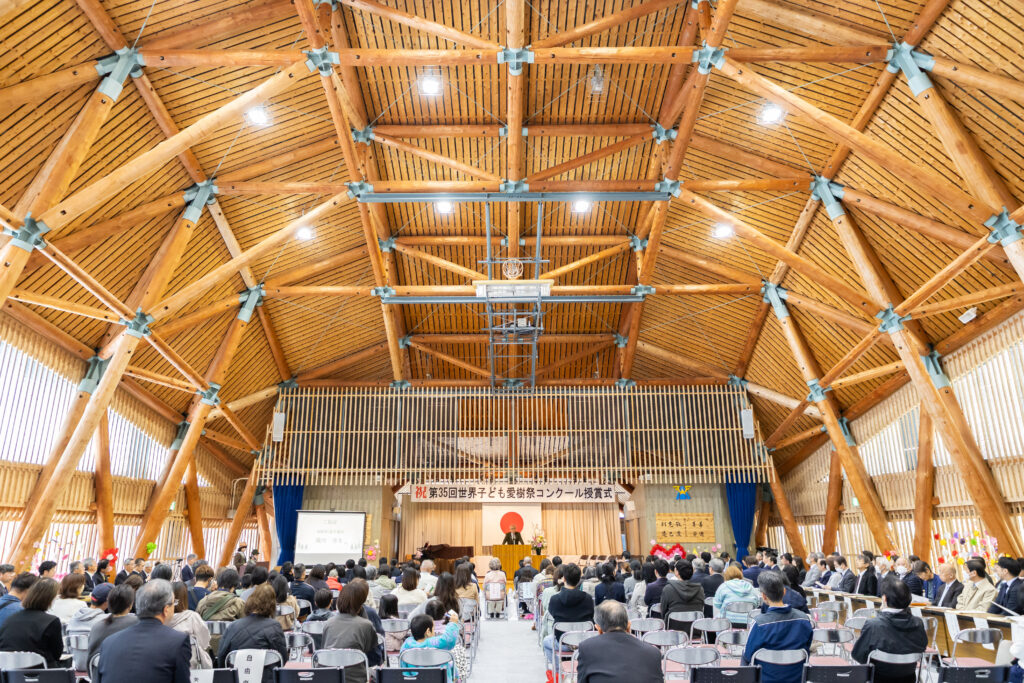 2026年3月21日(土)、八女市立矢部村清流学園体育館「木龍」において、「第35回 世界子ども愛樹祭コンクール授賞式」が開催されました。